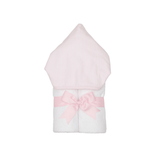 Personalized Baby Girl Pink Seersucker Stripe Hooded Towel