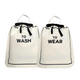 To Wash + To Wear Organizing Bags is a dual-use bag - a laundry bag and a closet bag! Made from natural cotton fabric, these versatile bags are helpful for any traveler, busy parent, or neat freak. Each bag fits 2 sets of outfits, which you can put inside and safely close the bags by pulling the recycled grosgrain ribbon, and you're ready! No more dirty clothes on top of your suitcase and it makes such the perfect addition to any household.