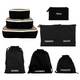 Our Canvas Travel Pack included 8 pieces and is a must-have for travel organizing and at home organization in your closet! This set comes with three of our popular, versatile packing cubes, one spacious laundry bag and one protective shoe bag. It also comes with one large pouch for your bras & panties, which is divided in the middle and will keep them all in place, along with, a case for your tech stuff and, a convenient bag for various little things, like your passport or airplane essentials.