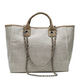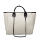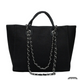 Personalized Large Linen Canvas Tote With Chian Handle - Black